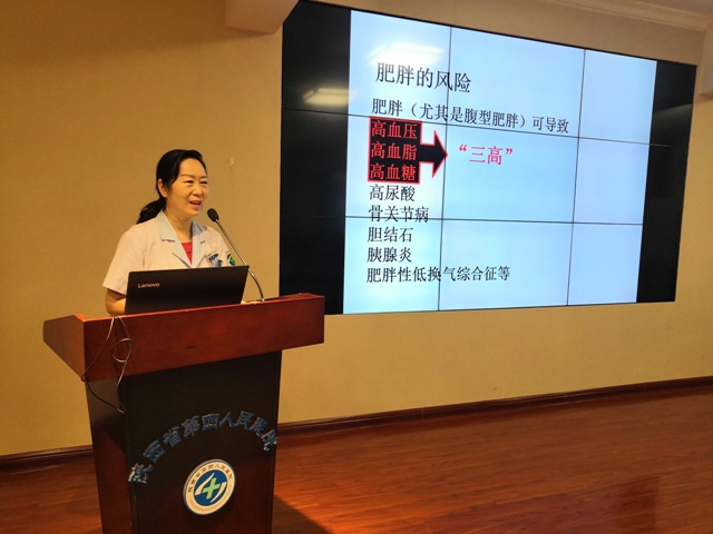 本期讲座,由六合彩生肖消化内分泌科主治医师路玉洁担任主讲, 讲座前消化内分泌科医护人员为到场的糖友免费进行了义诊和血糖监测以及发放了健康宣教手册。随后主持人黄静主任医师的“今天主讲的题目是啥?”现场人员一口同声答道:抛掉“三高”、收获健康 ,一个简单的提问,把现场参会听讲人员的注意力集中在课堂上。 俗话说,糖尿病不可怕,糖尿病并发症最可怕,的确,糖尿病带来的器官受损直接影响身体健康,并严重降低生活质量。对于2型糖尿病患者,最常见的就是心脑血管病变。 路老师主要从糖尿病的患病因素、典型和不典型临床表现、诊断、?だ?/span>以及血糖、血脂、血压等方面的代谢控制,可以控制糖尿病,避免急性并发症,预防慢性并发症,使患者与正常人一样拥有美好的生活等方面进行了详细讲解。用临床典型案例,生动的讲授了以教育为中心,集饮食、运动、药物、监测、心理、预防相结合的糖尿病综合管理科学理念,让糖友们对糖尿病的并发症有了更全面的认知。讲座结束后,消化内分泌科主任医师黄静和路玉洁主治医师与现场人员进行了互动,接受糖友们的健康咨询,友情提醒高血压病友们清晨起床经历3个两分钟(醒后睁眼平躺2分钟,缓慢起床后静坐2分钟,站立2分钟)再服药的重要性。对血糖控制不理想的病友也进行了一对一指导。