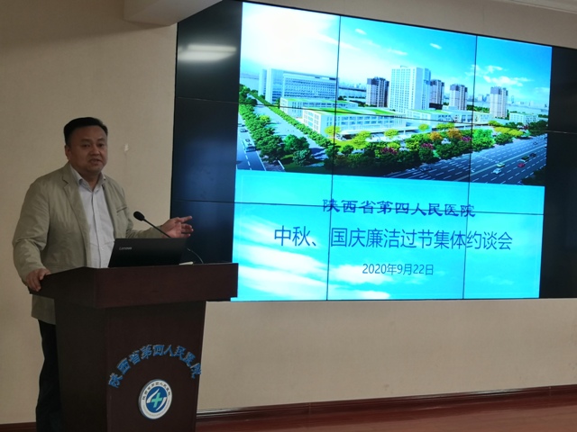 2020年中秋、国庆节将至,为深入贯彻落实中央八项规定精神,扎实开展好第三个纪律教育学习宣传月活动,持之以恒纠正“四风”,9月22日下午,医院组织召开了中秋国庆廉洁过节集体谈话会,会议由院长贾延主持。