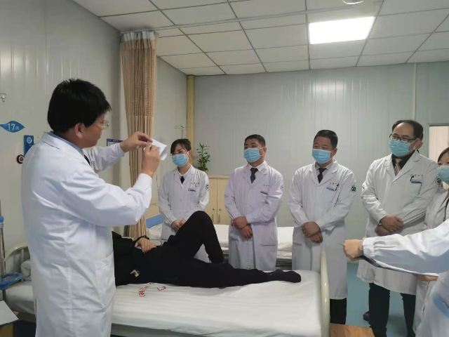 此次教学查房活动分两部分进行,首先由中医肛肠科王清奎主任以“肛周脓肿”为课题,通过PPT的形式详细地进行了讲解。随后选择一病例,紧密围绕病例特点、诊断与鉴别诊断、诊治方案、预后判断、影像资料、化验检查结果等展开讨论,王主任用丰富清晰的教学内容、轻松活泼的教学风格,查房中合理运用启发式教学方法,不断与一线医师、实习医师及护士进行互动,整个教学查房活动规范有序,讲解精彩,医师讨论互动热烈。因肛肠科病患部位涉及患者隐私,所以在整个查房过程中每个细节都体现出了对患者的人文关怀。