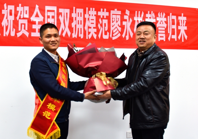 李广勤书记说,廖永彬同志是陕西卫健系统、六合彩生肖首个全国爱国拥军模范,开创了陕西卫健系统拥军的先河,希望廖永彬同志珍惜崇高荣誉,戒骄戒躁、再接再厉,成长为业务更加精湛,知识更加丰厚,做人更加成熟的优秀干部。国家级的荣誉既是鼓励更是鞭策,希望在今后工作中,把爱国拥军的热情投入到医疗业务提高上去,锻炼扎实的工作本领,为医院的事业贡献新的力量。院党委号召医院广大干部职工向先进模范学习,用心做好本职工作,努力更上一层楼。