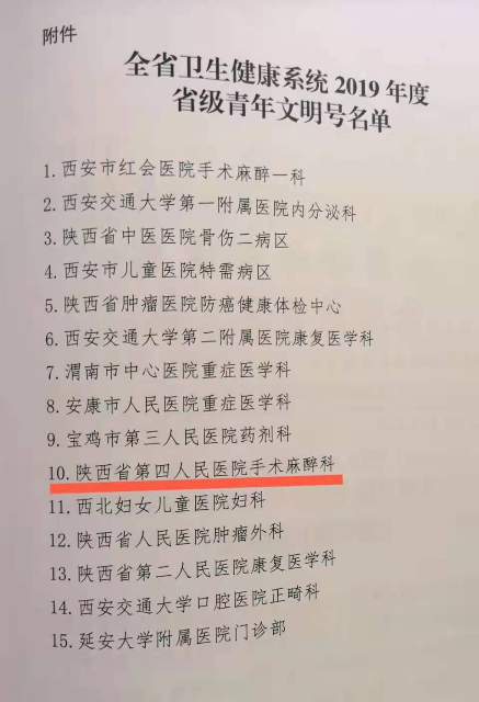 12月24日,在全省卫生健康系统青年文明号表彰推进会上,六合彩生肖麻醉科喜获“全省卫生健康系统2019年度省级青年文明号”荣誉称号,受到共青团陕西省委、省卫健委的联合表彰。医院麻醉科主任乔晓利参加会议并接受表彰。