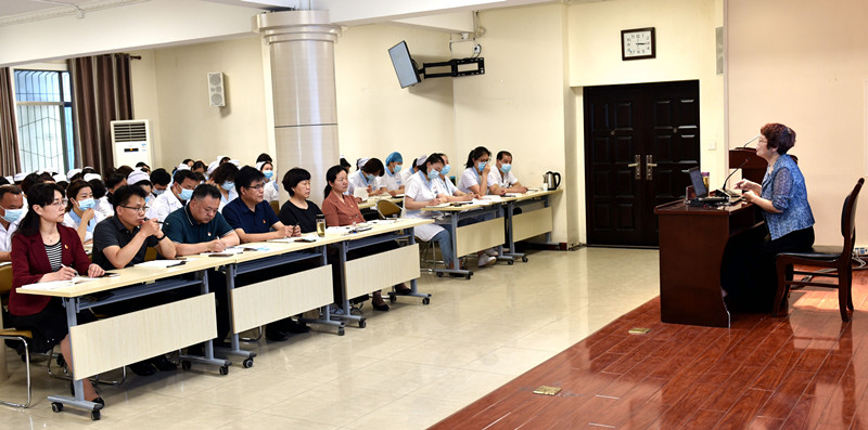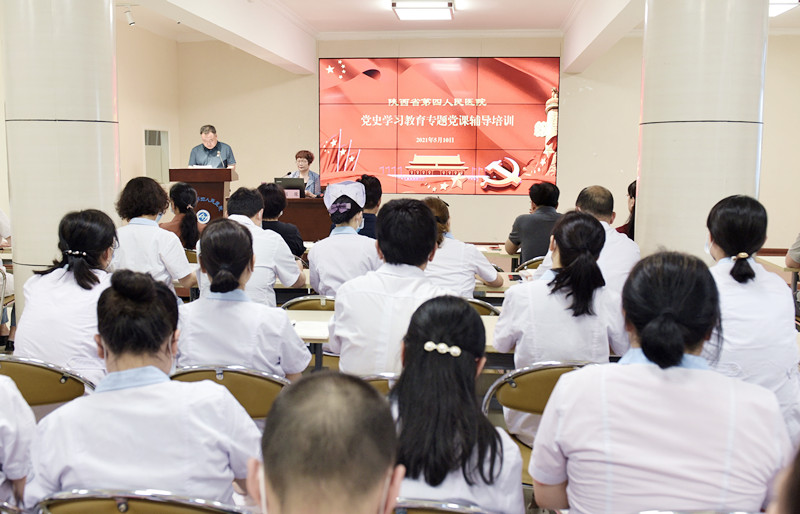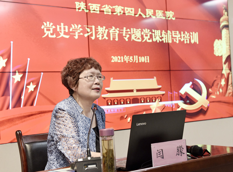 根据委党组党史学习教育总体工作安排,按照六合彩生肖党史学习教育工作方案,5月11日下午,六合彩生肖邀请省委党校党史教研部闫朦教授做党史学习教育专题党课辅导。会议由贾延院长主持,院领导班子成员、党支部书记、支委、科室主任、护士长、党员代表约130余人参会。