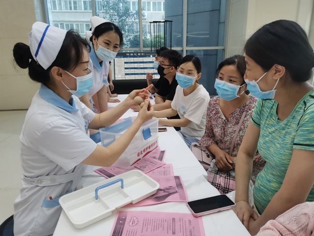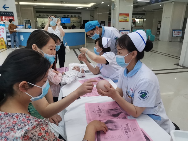 首先,医院产科和新生儿科在住院部大楼一楼大厅联合举行了母乳喂养宣传活动,利用LED屏幕滚动播出母乳喂养公益宣传片、科教视频以及相关科学知识;大厅设宣传展台,发放多种宣传材料和宣传手册,选派经验丰富的护士利用婴儿模型和乳房模具现场对大家进行一对一的母乳喂养技巧指导,让准妈妈们增加了母乳喂养成功的信心。