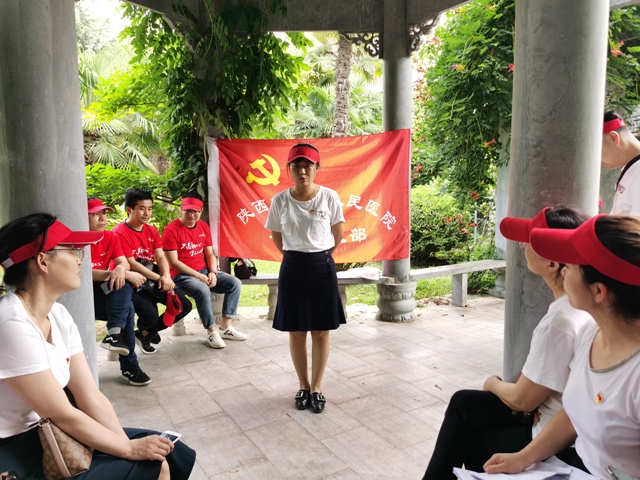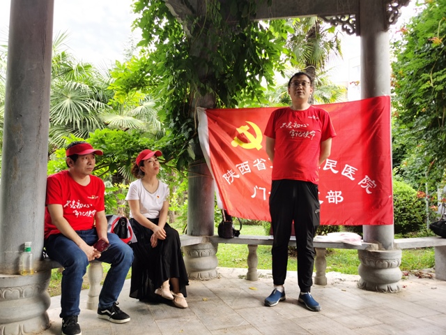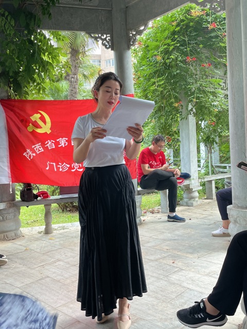 一个多小时的参观,党员们情绪饱满,一种强烈的爱国主义情感在胸中涌动。趁热打铁,门诊支部主题党日活动的重头戏开始了,支部书记刘东秀及其他6名党员精心准备了红色革命故事微党课,脱稿讲述,声情并茂,娓娓道来,大家围坐在交大校园古朴素雅的绿荫长亭回廊内,沉浸在中国共产党艰苦而又辉煌卓越的百年党史革命历程中。