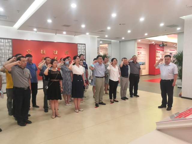 参观结束后,全体人员面向党旗重温了入党誓词,再一次表达为共产主义事业奋斗终身的信心和决心。