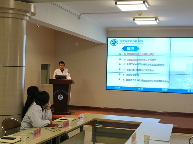 院长贾延主持座谈会并致欢迎词。国家脑卒中防治工程委员会督查专家韩建峰教授介绍了卒中中心建设工作的重要意义及考核评估流程;副院长聂书伟从医院概况、卒中中心建设开展情况、组织管理、绿色通道建设、质控分析、病例分享、宣教、规划与改进等几大方面进行汇报。