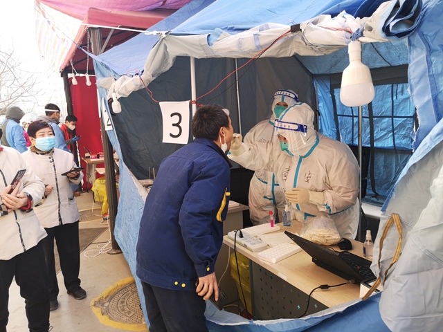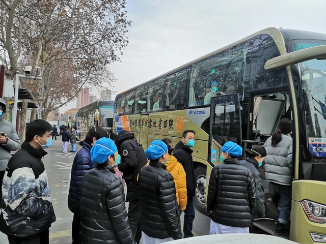 12月30日凌晨4点多,医院总值班接到省应对新型冠状病毒感染肺炎疫情工作领导小组办公室紧急通知,需抽调170名医务人员组成核酸检测队,支持西安市核酸采样工作。接到通知后,医院总值班干部第一时间向带班领导进行了汇报,并向医院疫情指挥部办公室报告,随即启动医院疫情防控工作应急预案,火速选派170名医务人员支援西安市未央区开展社区核酸检测工作。