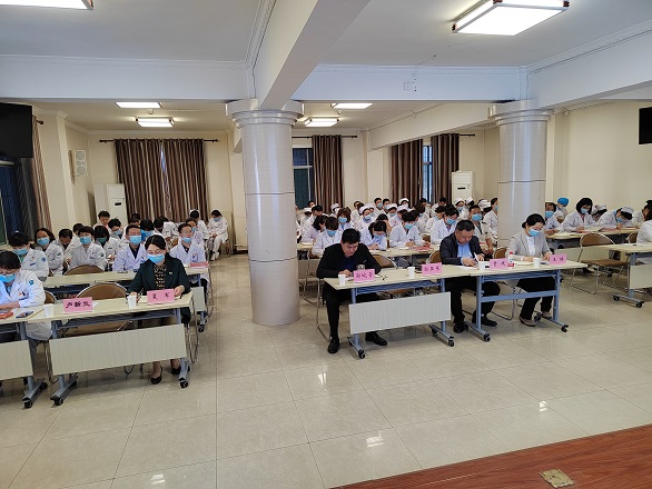 在院领导班子、各党支部书记、各科室主任、护士长110人参加了会议。