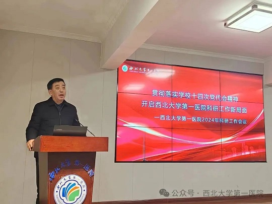 为进一步加强医院科研队伍建设,谋划下一阶段医院科研工作的思路和举措,推动医院高质量发展。1月18日下午,医院召开2024年科研工作会议,传达学习学校科研工作会议精神、安排部署医院2024年科研工作。会议特邀西北大学医学院副院长李方民做专题辅导报告。党委书记郭亚东、副院长聂书伟、副院长陈晨出席会议,各职能部门负责人、科室主任、护士长、科研秘书、科研项目负责人、研究生等现场百余人与线上400余人参会。会议由副院长张小刚主持。