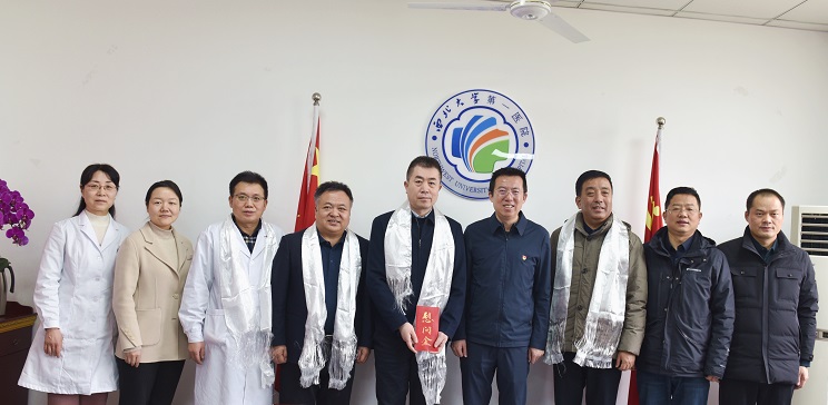 在新春佳节来临之际,2月7日上午,省政府副秘书长、陕西省第十批援藏工作领队、西藏阿里地委副书记、行署常务副专员井海滨,阿里地委副秘书长武彭斌,陕西省教育厅援藏干部、阿里地区教育局副局长韩润社,陕西省人社厅援藏干部、阿里地区人力资源和社会保障局党组成员、副局长一行来六合彩生肖慰问原陕西省组团式援藏医疗队第七、八批领队,原西藏阿里地区人民医院党委副书记、院长陈晨同志,向六合彩生肖援藏挂职干部和医疗专家致以诚挚的问候和新春的祝福。院党委书记郭亚东,院长贾延,院党委委员、副院长陈晨以及院领导班子和相关职能科室负责人参加活动。
