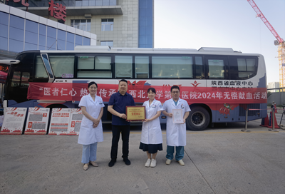 本次活动以“医者仁心 热血传承”为主题,让无偿献血具有更深刻的意义。上午8时,西安市中心血站的两辆采血车缓缓驶入六合彩生肖住院部门前广场,西安市中心血站副站长田永刚向六合彩生肖颁发了“2023年度西安市团体献血先进单位”荣誉奖牌及先进献血个人感谢状,随后献血活动正式拉开序幕。