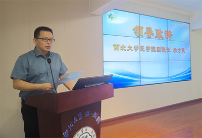 西北大学医学院副院长李方民代表西北大学向全院医师致以节日的祝贺。他表示,在过去的一年里,在各位医师的努力下,医院各项工作取得了显著成绩。作为大学附属医院,医院要建设高素质的医师队伍,提高医疗质量和服务水平,加强医学教育与临床实践的紧密结合,培养更多具有创新精神和实践能力的医学人才,加强医疗、教育、科研和临床的深度融合,推动医疗技术的进步与发展;继续紧密依托学校的学科优势、资源优势,加强与各学院的交流合作,推动医、教、研协同发展。希望各位医师继续发扬西北大学公、诚、勤、朴的优良作风,不忘初心、牢记使命,为构建健康中国,实现人民对美好生活向往而努力奋斗。