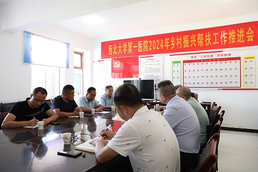 座谈会上,调研组一行与镇村干部、驻村干部交心谈心,听取了医院驻村第一书记2024年上半年工作开展情况汇报,详细了帮扶成效等情况,并对下半年乡村振兴帮扶工作提出措施和要求。