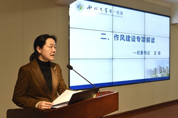 医院纪委书记王培对开展作风效能提升专项活动进行了安排部署。她强调,要以“强纪律、转作风、提效能、促发展”为目标在全院深入开展专项活动,要夯实工作作风,真抓实干,切实履行好岗位职责。通过专项活动的开展不断强化全院教职工党纪法规意识,提升工作执行力和效能,为圆满完成年度工作目标筑牢坚实基础。