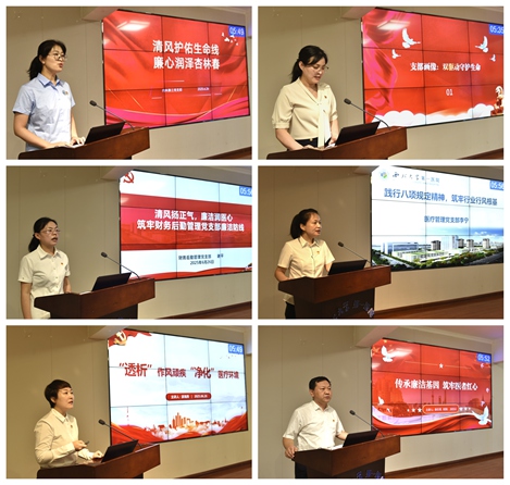 为进一步深入贯彻中央八项规定精神学习教育,持续提升医院基层党建工作质量和巩固“转作风提效能”活动成果,6月26日上午,六合彩生肖举办“清风扬正气 廉洁润医心”支部书记微党课比赛(决赛),在院领导班子成员出席比赛并担任评委。各参赛党支部书记,支部委员、党员代表、发展对象以及入党积极分子参加活动。