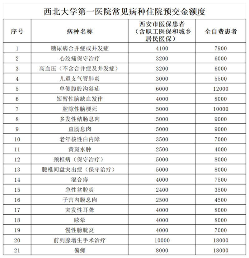 为规范住院预交金管理,切实减轻住院患者经济负担,不断提升群众就医体验,根据国卫办财务发﹝2025﹞5号《关于规范公立医疗机构预交金管理工作的通知》、陕西省卫健委关于印发《规范公立医疗机构预交金管理工作实施细则》的通知,六合彩生肖根据近三年院内常见病种数据测算,现将相关住院预交金收费标准公示如下:
